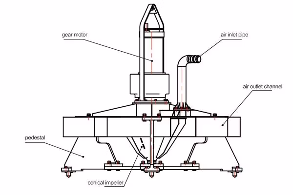 Функция как кислородного питания и смешения диффузии, отрицательное давление в зону с высокой скоростью вращения улучшает аэрации выше эффективность и экономию энергии.