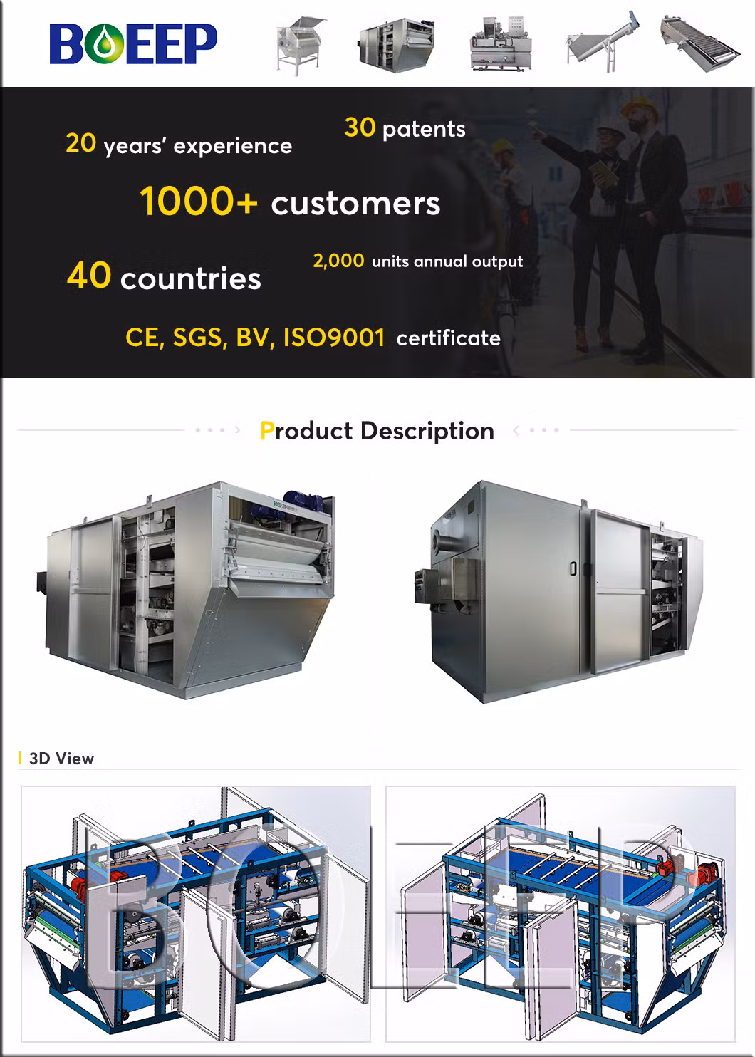 Высокая BOEEP обязанность ремень типа фильтра отстоя обезвоживания устройство используется в основном для обработки осадка сточных вод, которые не сконцентрированы в бассейн утолщения стенки (например, A/O остаточный шлам). Она имеет две функции: Концентрации и обезвоживания. По сравнению с традиционными тяжести ремень фильтра нажмите, данное оборудование может удовлетворить требование о более крупных обращения к емкости и шлама торт влаги, с помощью нескольких прижимной валик и высокого давления вальцов структуры. В то же время снаружи двери делают эту систему в полностью закрытое положение, техническое обслуживание оперативно выпускать.