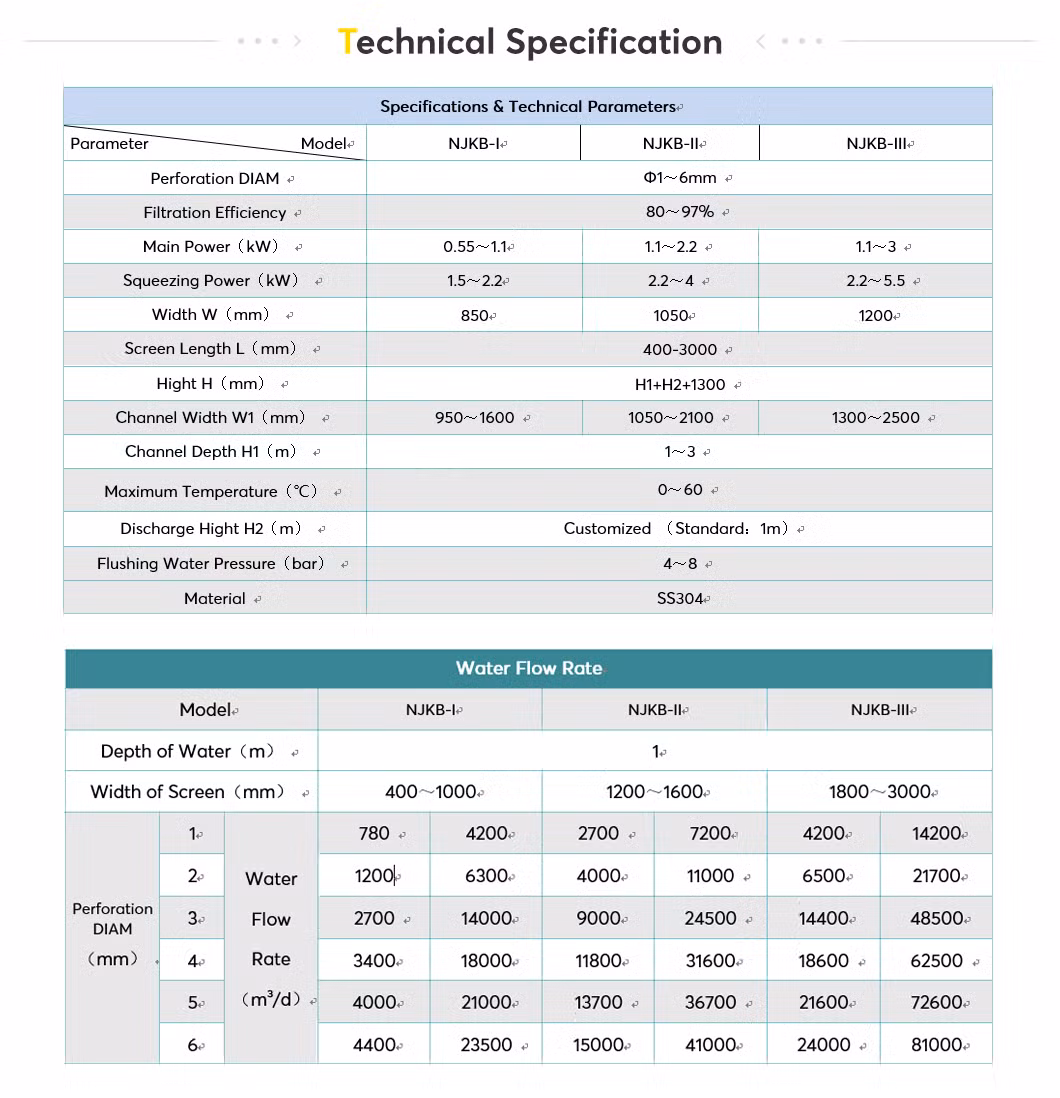 Как правило, механические узлы и агрегаты экрана можно добиться различными перехвата эффективности для различных процессов обработки сточных вод. Центр NJKB диапазон расхода экран может непрерывно и эффективно выполнить перехват твердого мусора различных форм в воде, особенно плоские, газа и оптоволоконный кабель типа решетки, которые трудно перехватить путем обычного экрана. Это может значительно снизить нагрузку в последующий процесс, повысить эффективность работы последующих оборудования и сократить время на техническое обслуживание.
